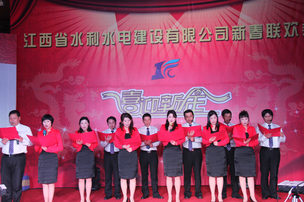 玉兔辞旧岁,瑞龙迎新春。1月18日,江西省水利水电建设有限公司2012年迎新春联欢会在南昌市新东方大酒店隆重举行,来自公司总部、国内外分公司、各专业公司、施工项目部的300余名管理人员及员工欢聚一堂,共贺新春。