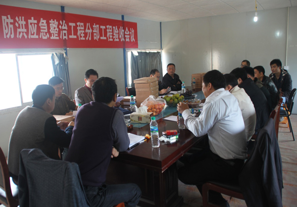 2014年11月20日上午9点,萍乡市城市防洪应急整治工程第一次5个分部工程验收会议在项目部2楼会议室举行。经过现场察看、资料核查,该项目明河段和箱涵段的5个分部工程实体质量和内业资料得到各方的一致好评,顺利按新规范的评定要求通过了验收工作。