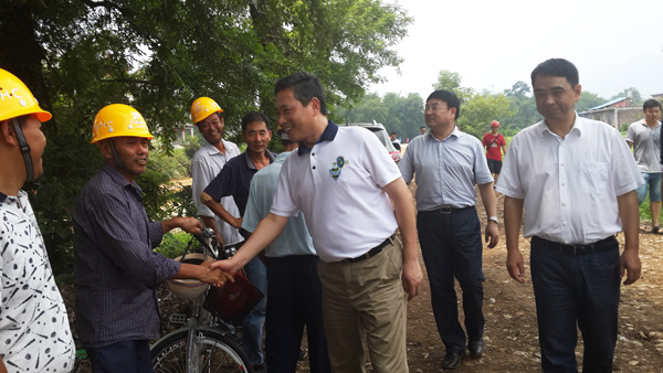 2014年8月8日上午,上饶市委书记陈俊卿一行来到我公司承建的玉山县樟村镇防洪工程检查指导工作。来到施工现场,陈俊卿书记一行顶着炎炎烈日,深入查看并了解了防洪工程的投资规模和施工生产建设情况,随后,项目部经理杨小贵对项目完工后将产生的防洪生态效益作了简单介绍,陈俊卿书记听后非常高兴,他指出,项目部和承建单位要齐心协力,加强安全生产管理,确保工程顺利完工,早日造福当地百姓。最后,陈俊卿书记还询问了施工人员的生活情况,叮嘱项目部既要保证工程施工进度,也要注意防暑工作,让员工家属放心。