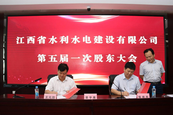 会议号召,全体水建人要不忘初心、牢记使命,始终高举习近平新时代中国特色社会主义思想伟大旗帜,坚持在新一届董事会的领导下,凝心聚力、共克时艰,担当作为、强化落实,以只争朝夕不负韶华的意志、永不懈怠的精神,努力开创江西水建发展的新局面,为实现“公司强 员工富”的宏伟目标而努力奋斗!”